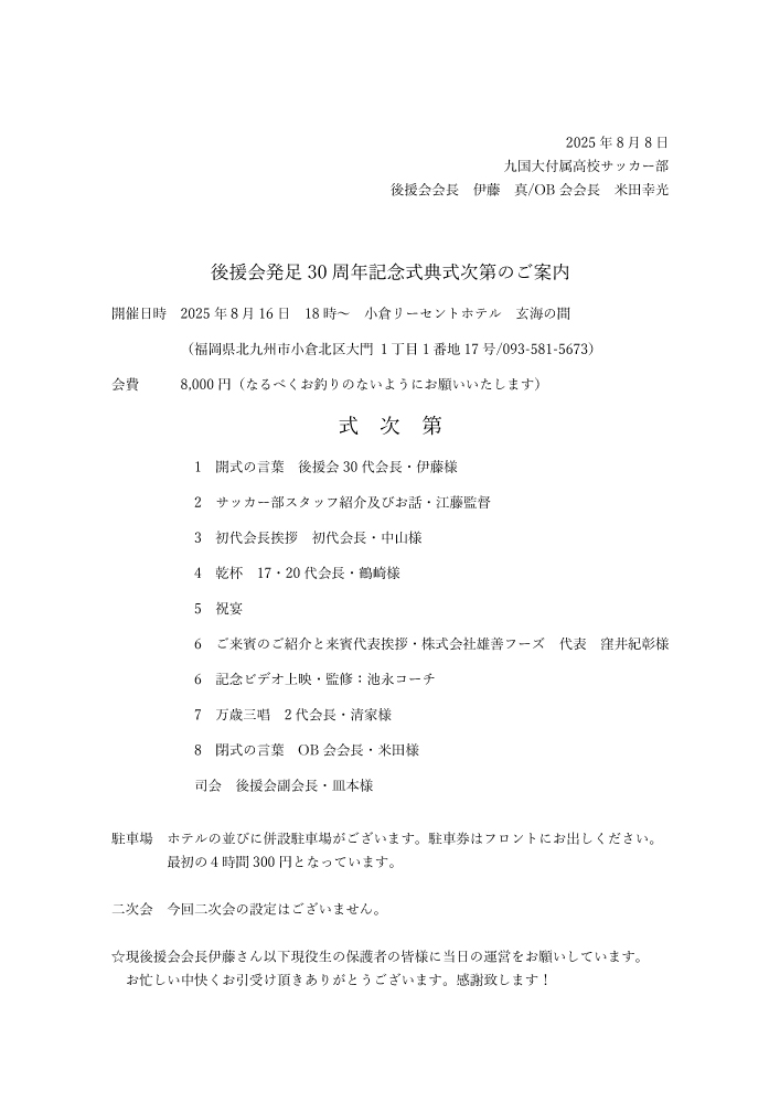 > 後援会活動 > 後援会発足30周年記念式典式次第のご案内
